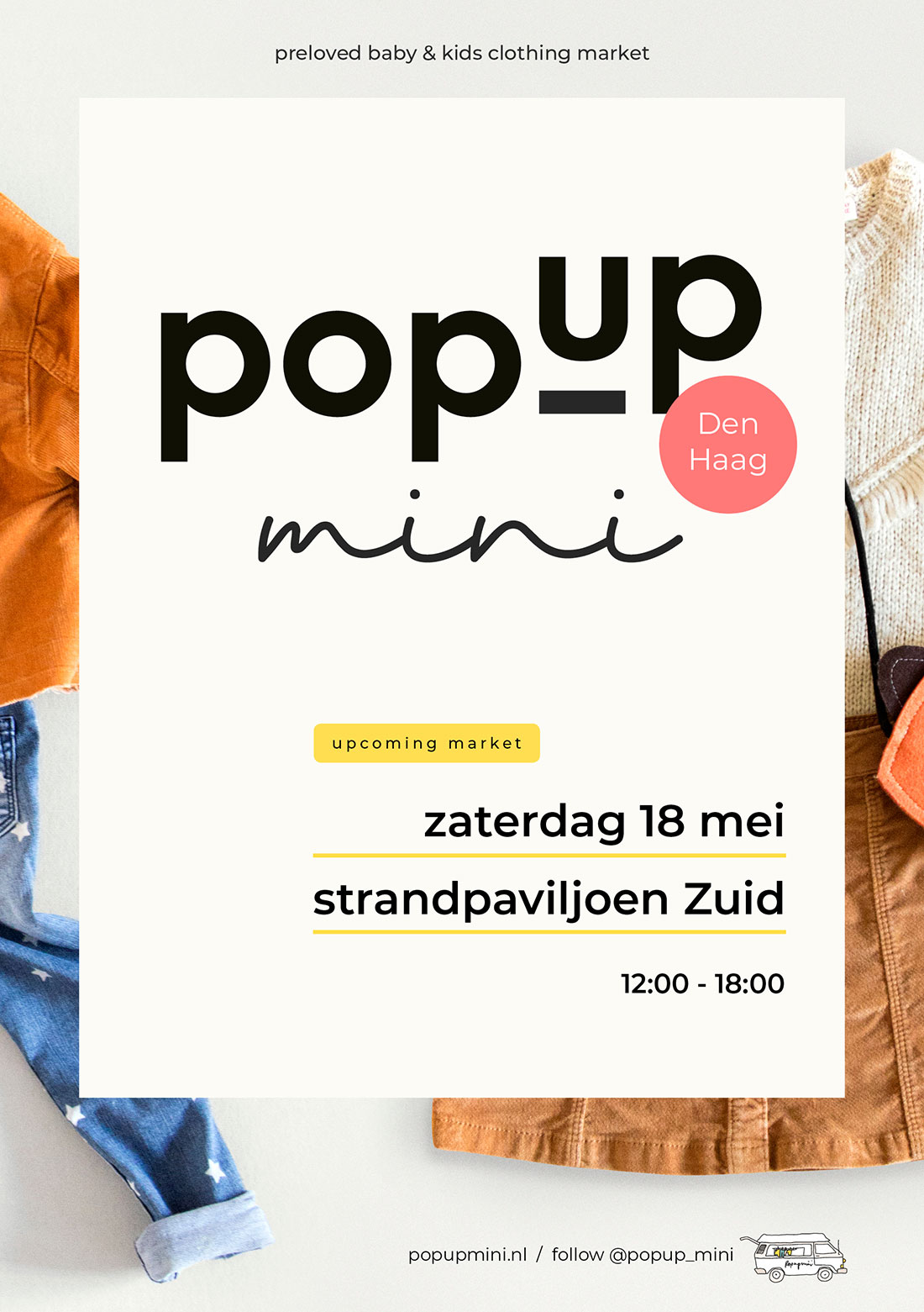 Kom ook op zaterdag 18 mei 2019 naar onze allereerste pop-up mini markt bij strandpaviljoen Zuid. Verwacht toffe tweedehands baby- en kinderkleding, coole interieur items, live deuntjes, (h)eerlijk eten, good vibes en hopelijk de zon.